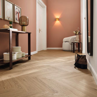 Viele Verlegebilder möglich: z. B. Chevron/Herringbone/Fischgrät und große Dielenformate – je nach Kollektion.